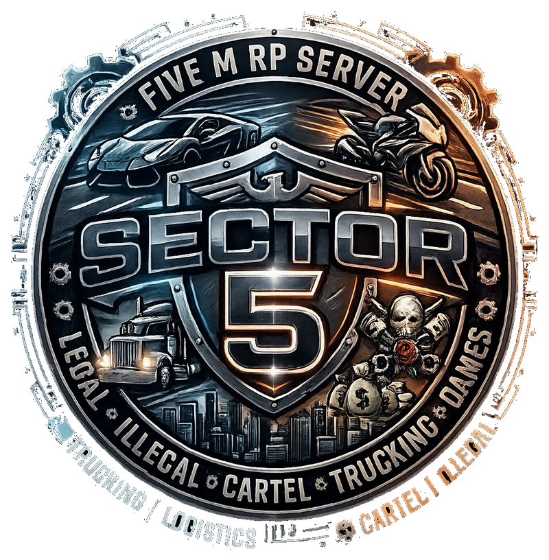 Sector 5 is a FiveM roleplay server where legal empires and illegal operations run side by side. Run cargo, build cartels, swap engines, claim territory. Your story. Your rules.